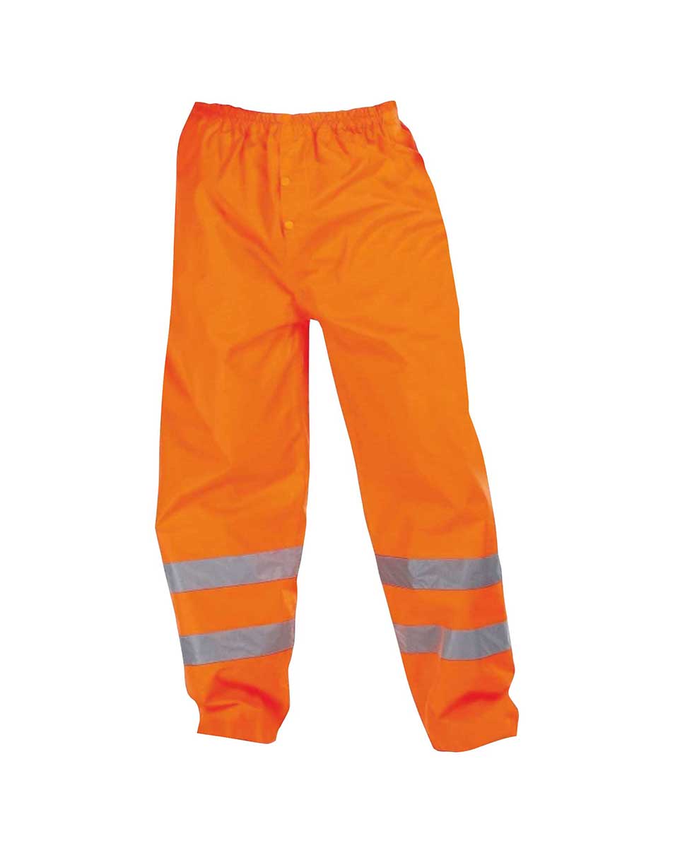 Πολυεστέρας αδιάβροχο παντελόνι, με αντανακλαστικές ταινίες. Ελαστική μέση για άνεση, μονωμένες ραφές. Πιστοποίηση EN 20471:2013 για ασφάλεια και ορατότητα.