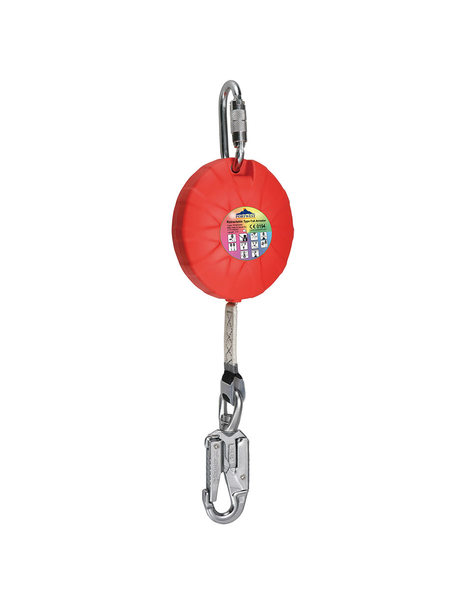 Ανακοπή πτώσης FP40 της Portwest. Αναδιπλούμενο πλέγμα 3 μέτρων με κρίκο τύπου καραμπίνερ και διπλή κλειδαριά ασφαλείας. Είναι υψηλής αντοχής, ελαφρύ και ανθεκτικό στο νερό και στην υπεριώδη ακτινοβολία.
