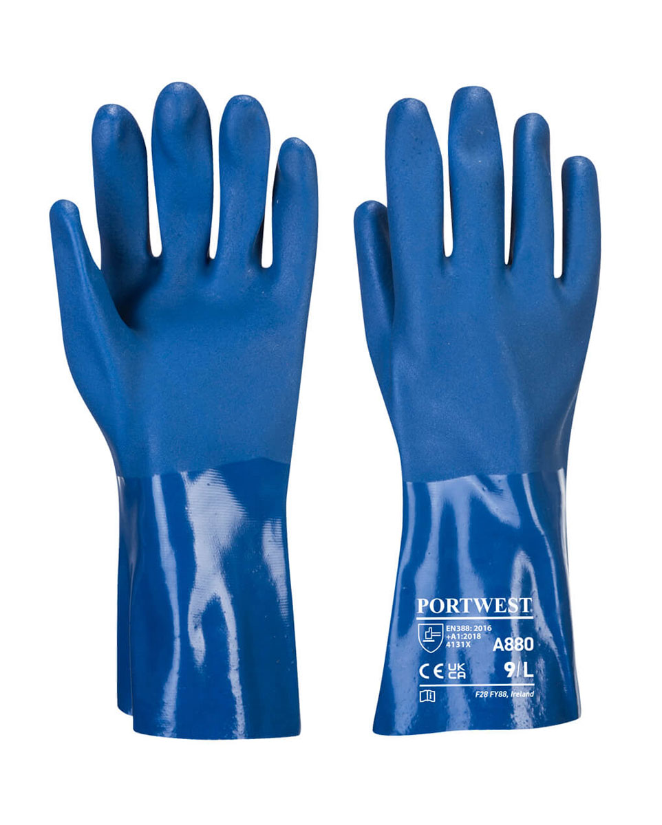 Προστατευτείτε από χημικά, ζωικά λίπη και ιχθυέλαια με τα γάντια Trawlmaster A880 από PVC της Portwest. Εξαιρετικά εύκαμπτα και αδιάβροχα, με μαλακό βαμβάκι εσωτερικά για άνεση και πλήρη εξωτερική επικάλυψη για μέγιστη προστασία.