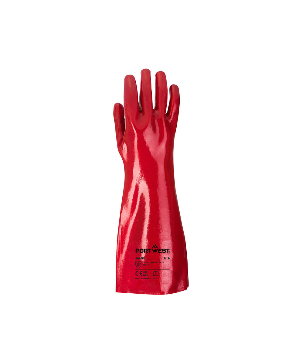 Σύνθεση: PVC, πολυεστέρας Ιδιαίτερα χαρακτηριστικά Μήκος 45 εκατοστά Η επένδυση πυκνότητας 12 επιτρέπει στην εξωτερική επίστρωση να έχει μια ισχυρή αλλά εύκαμπτη βάση Πλήρως επικαλυμμένα για μέγιστη προστασία από τα υγρά Χωρίς φθαλικό οξύ Μέγιστο EN επίπεδο 4 τριβής CE Πιστοποιημένο Πρότυπα EN ISO 21420 2020 Επιδεξιότητα 5 EN 388: 2016 + A1: 2016 + A1: 4121X