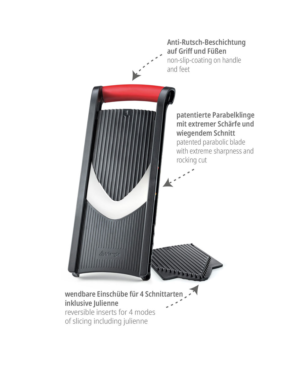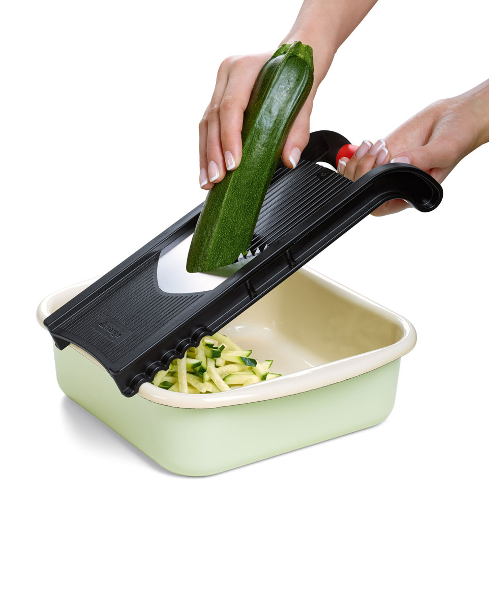 Μαντολίνο λαχανικών. Κόβει λαχανικά σε πάχος 1- 3 – 5 χιλιοστών και julliene σε πάχος 4 χιλιοστών.