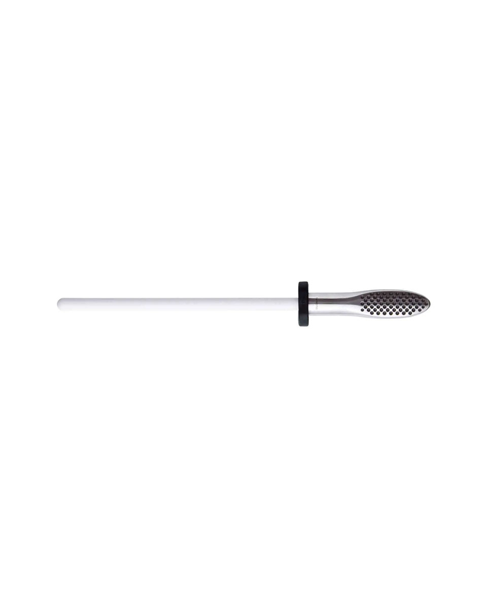 Το κεραμικό μασάτι G-74 της Global είναι το απόλυτο εργαλείο για τη διατήρηση των μαχαιριών σας σε άψογη κατάσταση. Με μήκος 22 εκατοστά και διάμετρο 12 χιλιοστά, είναι ιδανικό για χρήση σε μαχαίρια διαφόρων μεγεθών, διασφαλίζοντας ότι κάθε ακόνισμα θα είναι καθαρό και ακριβές. Με αυτό το μασάτι, μπορείτε να ακονίσετε όλα τα μαχαίρια της Global, αλλά και άλλα ιαπωνικά και ευρωπαϊκά μαχαίρια. Ο εργονομικός σχεδιασμός του με πλαστικό προστατευτικό παρέχει άνετο και ασφαλές κράτημα, ενώ το κεραμικό υλικό του επιτρέπει το απαραίτητο φινίρισμα στη λεπίδα χωρίς να αφαιρεί περιττό υλικό. Εάν έχετε επενδύσει σε ένα ποιοτικό μαχαίρι, με την κατάλληλη φροντίδα θα διαρκέσει μια ζωή. Το κεραμικό μασάτι G-74 της Global σας επιτρέπει να διατηρείτε την ακμή των μαχαιριών σας πάντα αιχμηρή για υψηλή απόδοση στην κουζίνα.