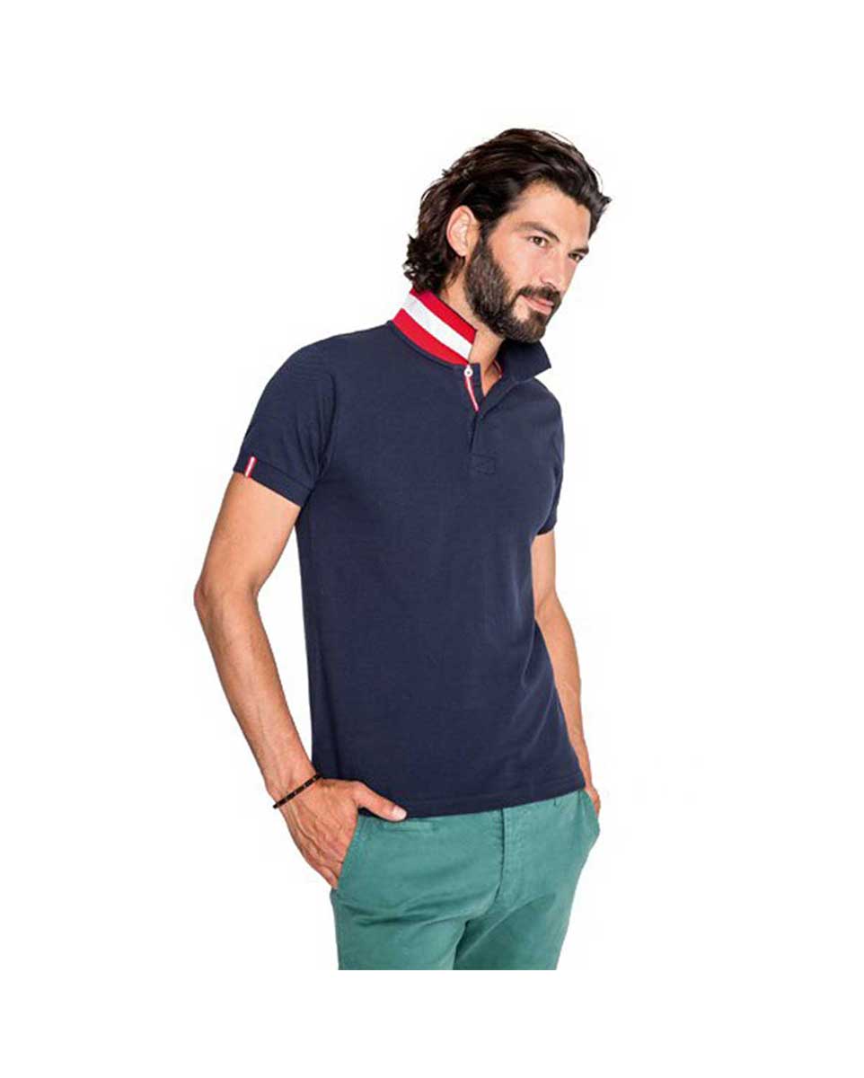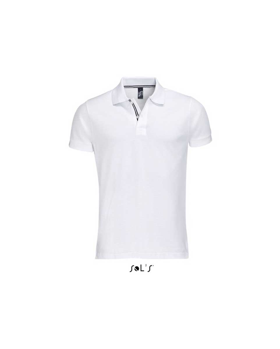 Μπλούζα polo ανδρική Σύνθεση: Πικέ 200 γρ/τμ, 100% βαμβάκι πενιέ Ringspun Ιδιαίτερα χαρακτηριστικά: Ενισχυμένη πατιλέτα με δύο περλέ κουμπιά Ρίγες σε χρωματική αντίθεση μέσα από το γιακά Πλαϊνέs ραφές και εφαρμοστή γραμμή Επιπλέον κουμπί στην εσωτερική ραφή Γιακάς και τελείωμα στα μανίκια από ριπ και φακαρόλα στο λαιμό
