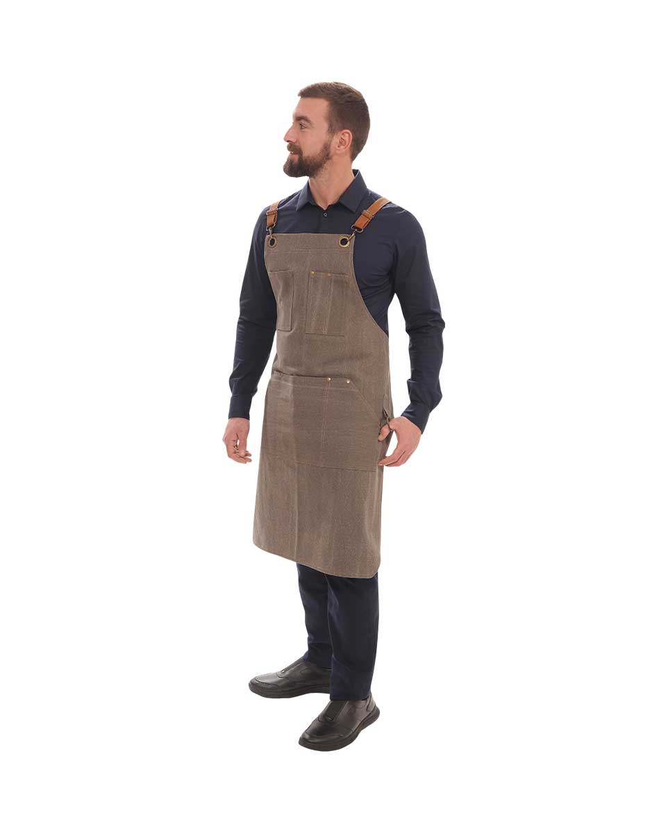 *Οι τιράντες πωλούνται χωριστά Οικονομική λύση για ιδιαίτερη εμφάνιση του προσωπικού Σύνθεση: 100% βαμβάκι, ελληνικής ραφής Ιδιαίτερα χαρακτηριστικά: Από πετροπλυμένο βαμβακερό καμβά καφέ χρώματος Δύο τσέπες στο στήθος και μία μεγάλη τριπλή στη μέση Μπρονζέ μεταλλικά στοιχεία Κρίκους για σύστημα τιραντών χιαστή Ένα μέγεθος