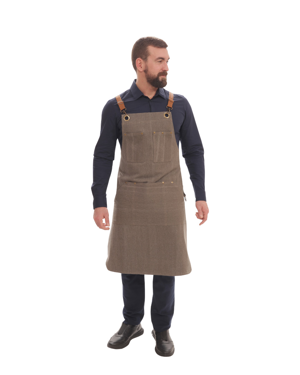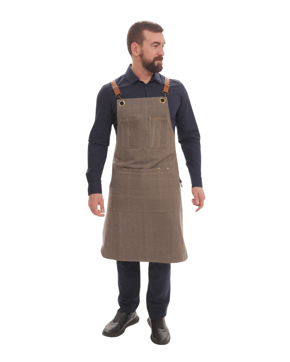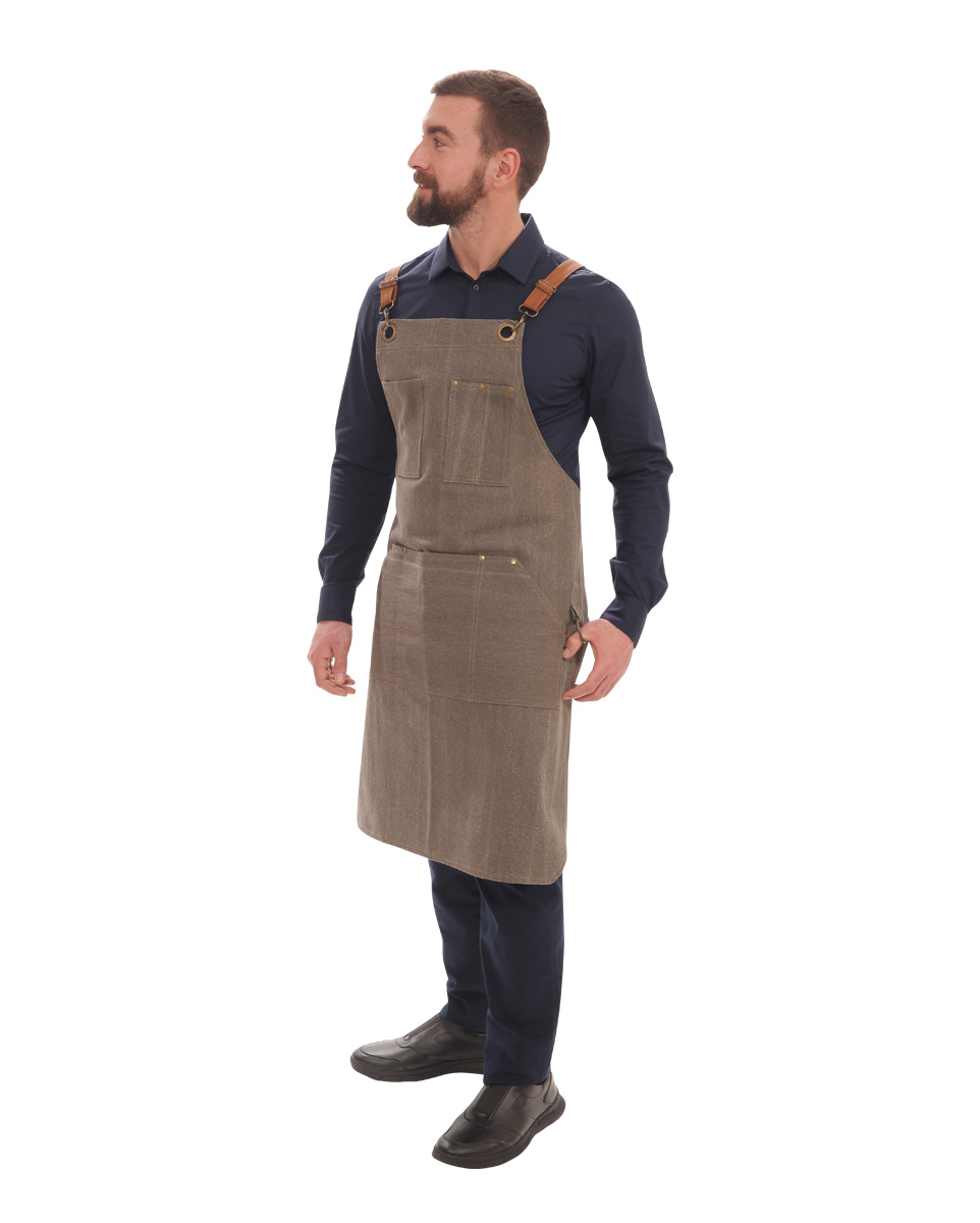 *Οι τιράντες πωλούνται χωριστά Οικονομική λύση για ιδιαίτερη εμφάνιση του προσωπικού Σύνθεση: 100% βαμβάκι, ελληνικής ραφής Ιδιαίτερα χαρακτηριστικά: Από πετροπλυμένο βαμβακερό καμβά καφέ χρώματος Δύο τσέπες στο στήθος και μία μεγάλη τριπλή στη μέση Μπρονζέ μεταλλικά στοιχεία Κρίκους για σύστημα τιραντών χιαστή Ένα μέγεθος