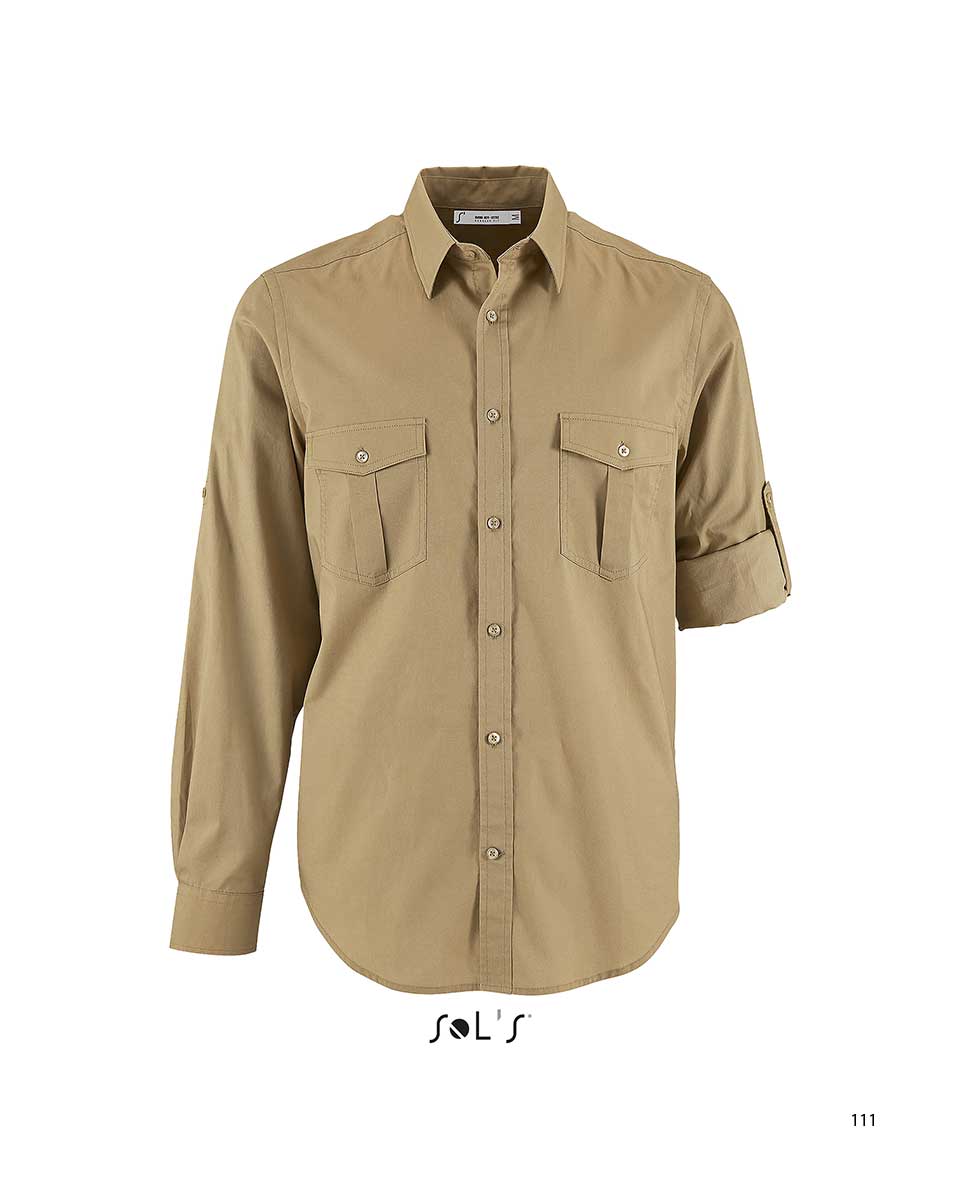 Πουκάμισο ανδρικό Burma της Sol’s με 100% βαμβακερή σύνθεση. Διαθέτει ίσια γραμμή, 2 τσέπες στο στήθος με καπάκι και κουμπί, πατιλέτα με 7 κουμπιά, ίσιες μανσέτες με 1 κουμπί, σχισμή στο τελείωμα με κουμπί και ρυθμιζόμενες λωρίδες για γύρισμα μανικιών. Ανακαλύψτε την ανδρική μόδα με στυλ και ποιότητα.