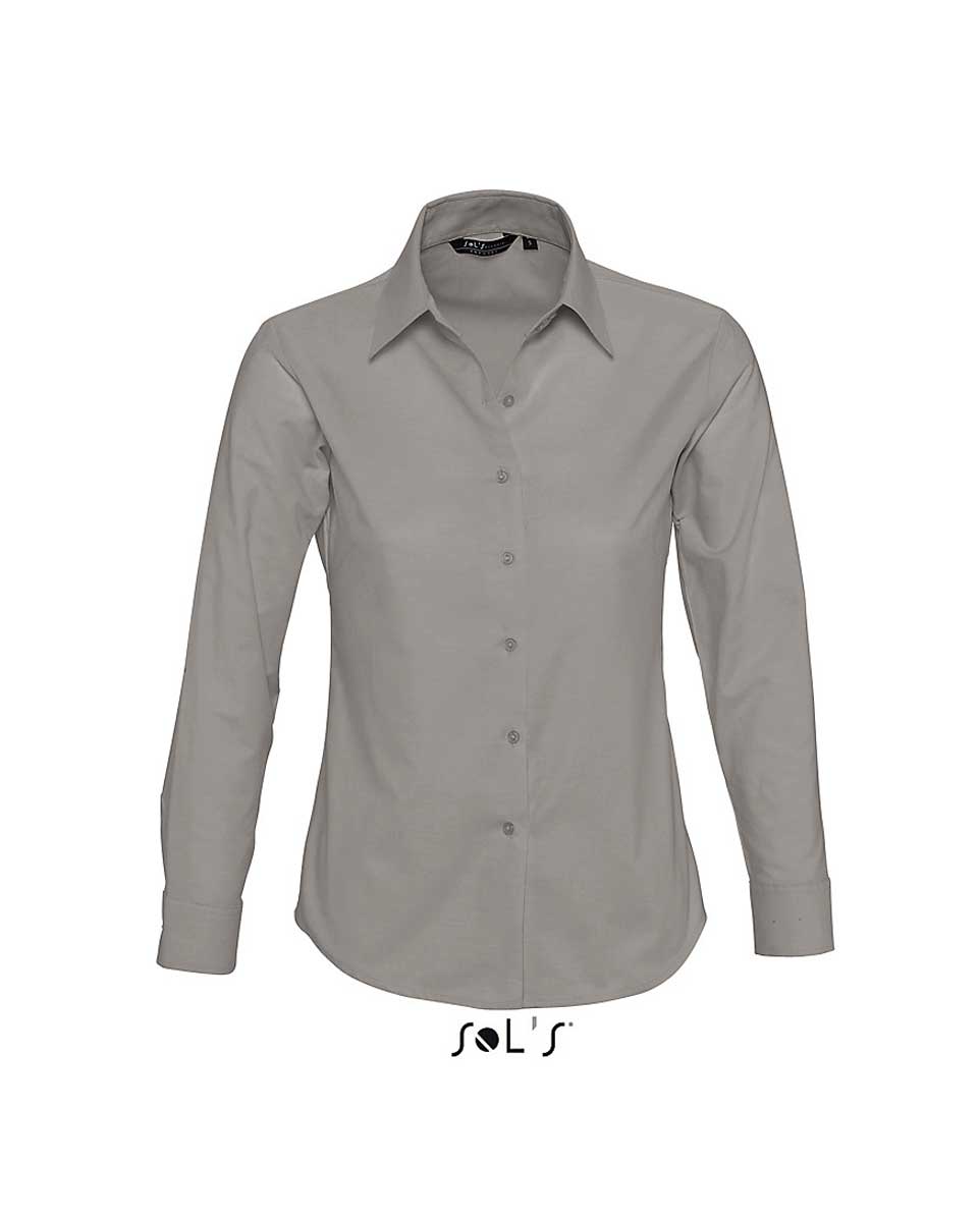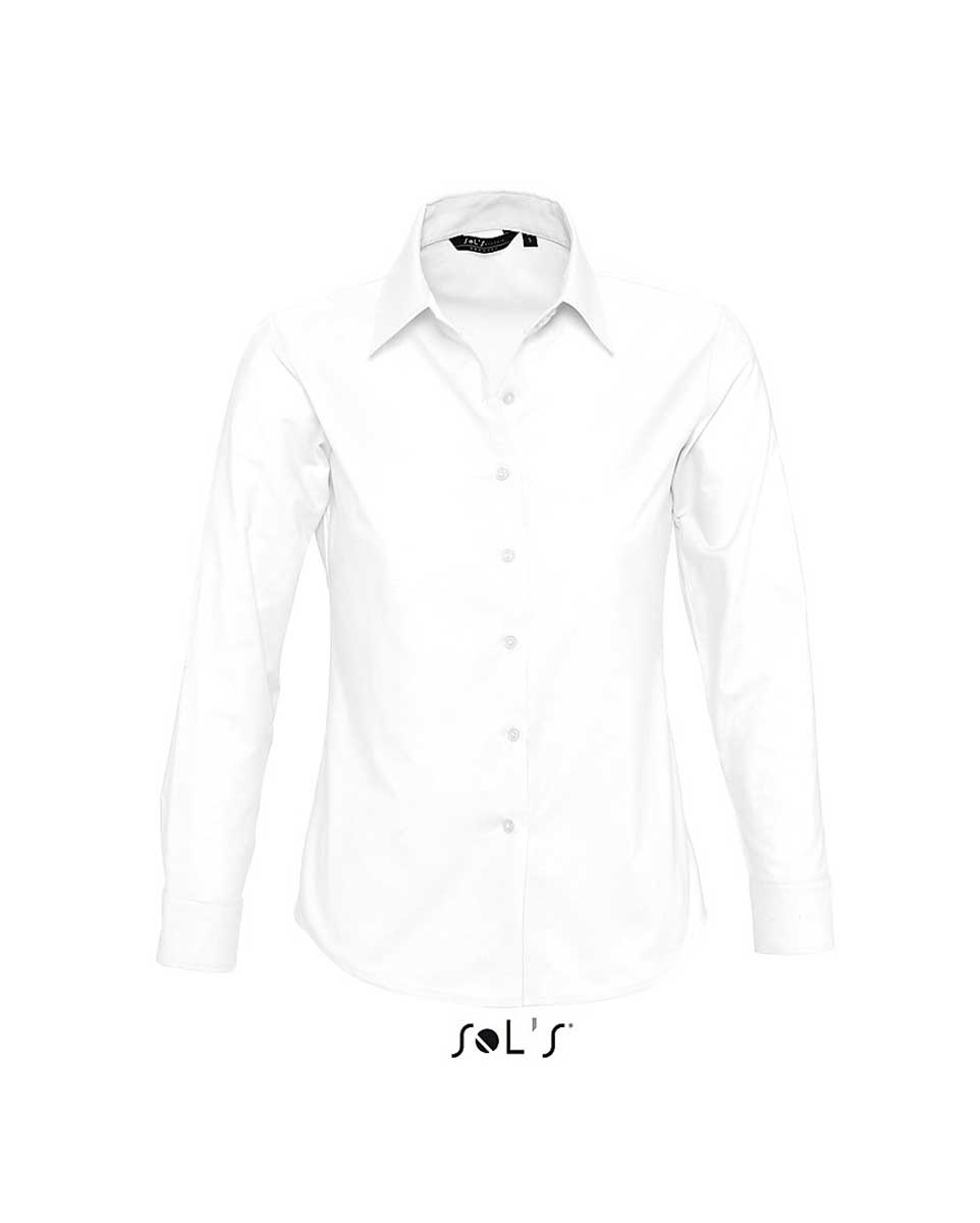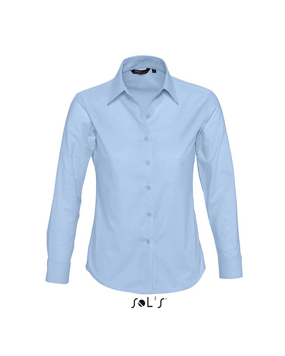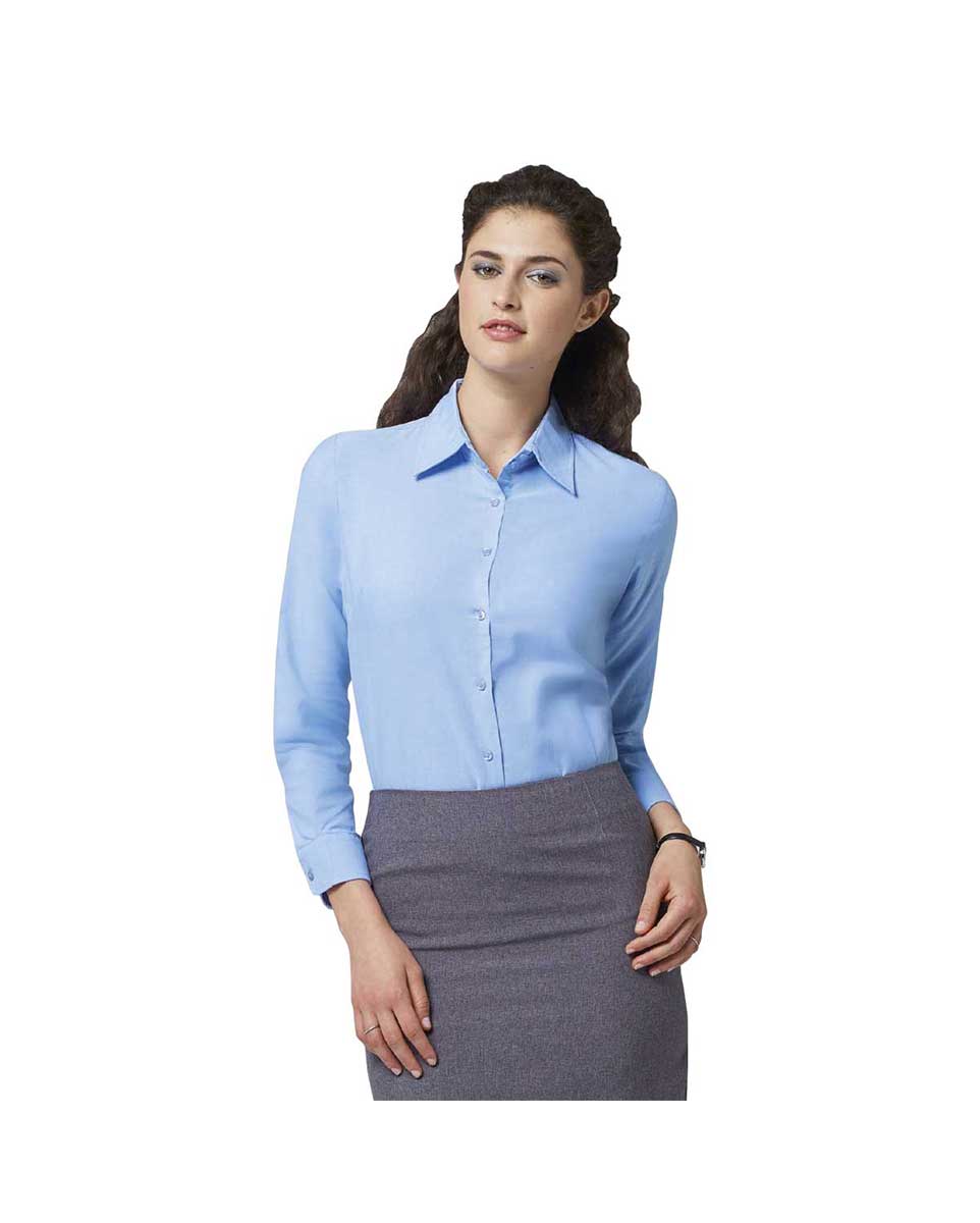 Πουκάμισο μακρυμάνικο γυναικείο oxford Σύνθεση: 135 γρ/τμ (χρωματιστό) 130 γρ/τμ (λευκό) 70% βαμβάκι 30% πολυέστερ νηματοβαφή Ιδιαίτερα χαρακτηριστικά: Κλασική λαιμόκοψη με δύο κουμπιά Κυκλικές ρυθμιζόμενες μανσέτες με δύο κουμπιά Πένσες στο στήθος Πατιλέτα με 7 κουμπιά στον ίδιο τόνο Τεχνολογία Easy Care Επεξεργασία που διευκολύνει το πλύσιμο και το σιδέρωμα Μειώνει την τσάκιση που δημιουργείται από το νερό στο πλύσιμο