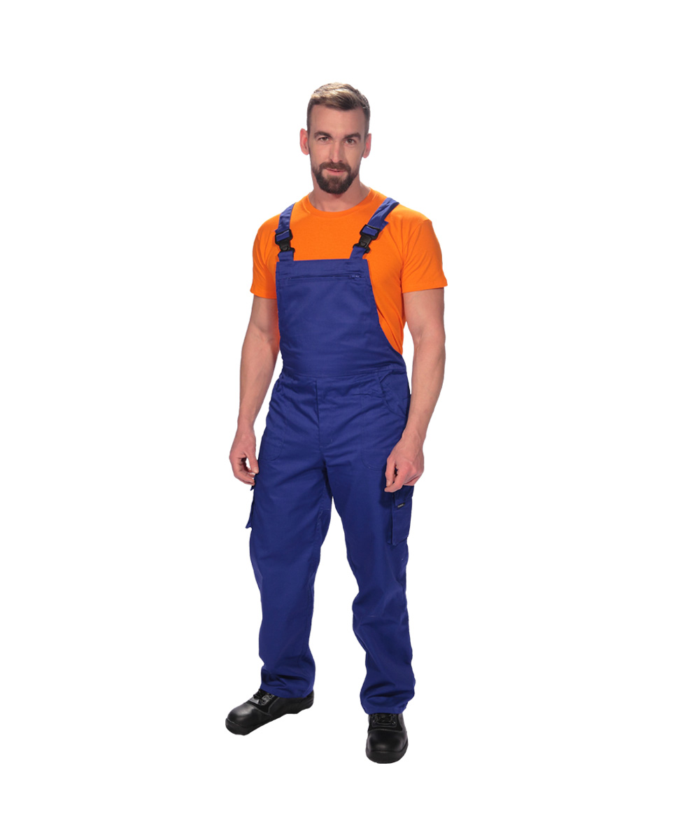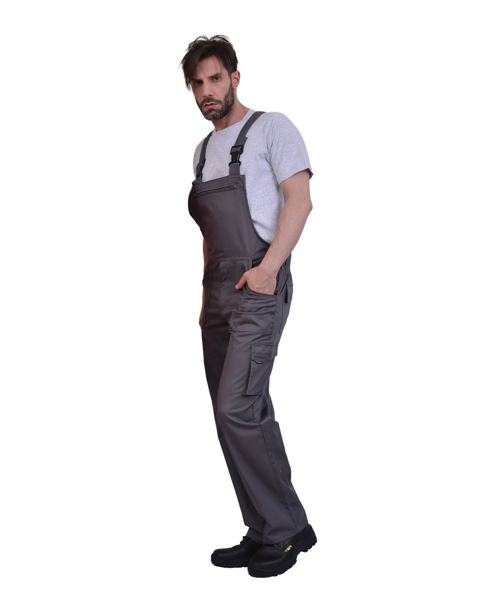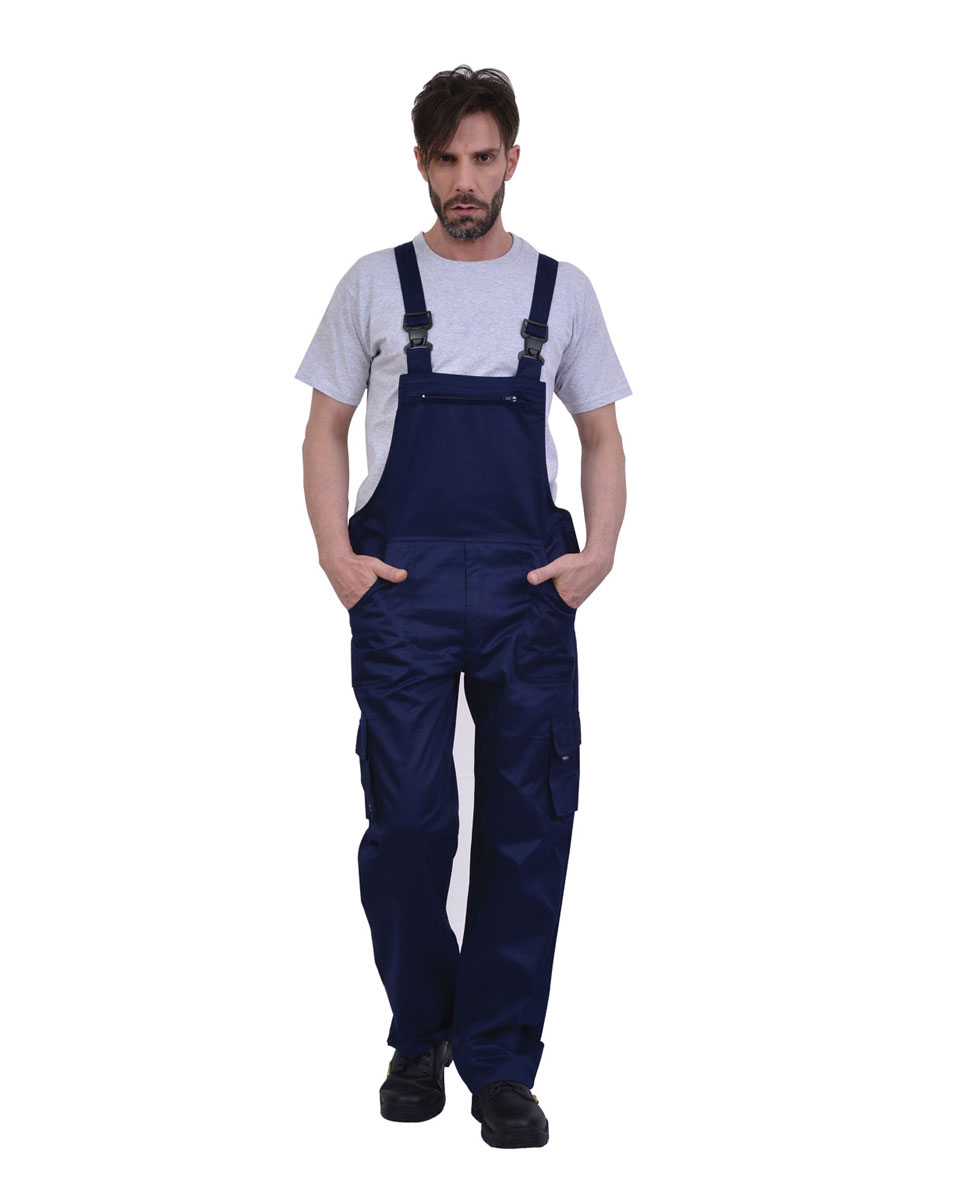 Αποκτήστε την Σαλοπέτα εργασίας Ergoline της Ergosafety με πλαστικά κουμπώματα αυξομείωσης ύψους στο λαιμό και πρακτικές τσέπες.