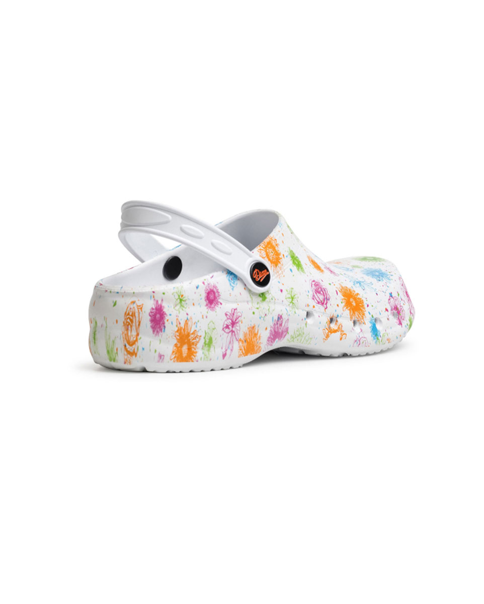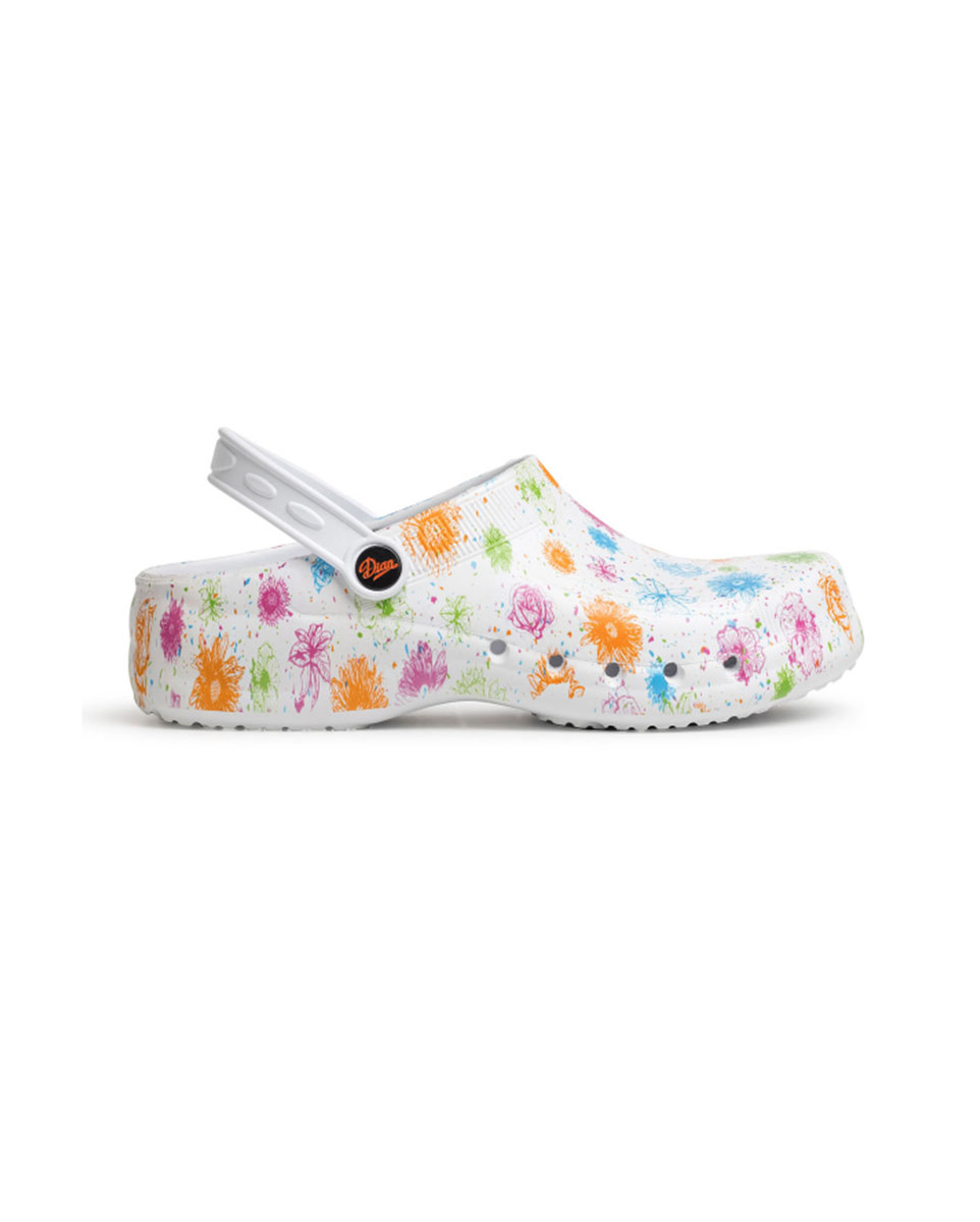 Ιδανικό για χώρους εστίασης και εργαστήρια τροφίμων. Ιδιαίτερα χαρακτηριστικά Πολύ ελαφριά, αντιβακτηριδιακά, χωρίς λάτεξ, μονοκόμματα, ανατομικά και αντιολισθητικά παπούτσια Eva. Διαθέτει πτυσσόμενο πίσω ιμάντα, με οπές στα πλάγια για να διευκολύνεται η εφίδρωση, ο καθαρισμός και να αποφεύγεται η άμεση διείσδυση υγρών στο παπούτσι. Σόλα με μικροσκοπικά σημεία που κάνουν μασάζ για να διεγείρουν την κυκλοφορία του αίματος. Διαθέτει εσωτερική υφασμάτινη σόλα από αφρό λατέξ με αντιβακτηριακή δράση. Ειδικα τμήματα στον πάτο από TPU που χαρίζουν καλύτερη πρόσφυση. Πλένονται στο πλυντήριο μέχρι 40oC. Κανονισμοί: Πιστοποιητικό CE, EN-ISO-20347